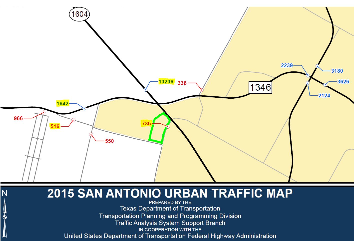 The Texas Department of Transportation's "2015 San Antonio Urban Traffic Map" indicates the following Annual Average Daily Traffic (AADT) statistics neighboring the property: